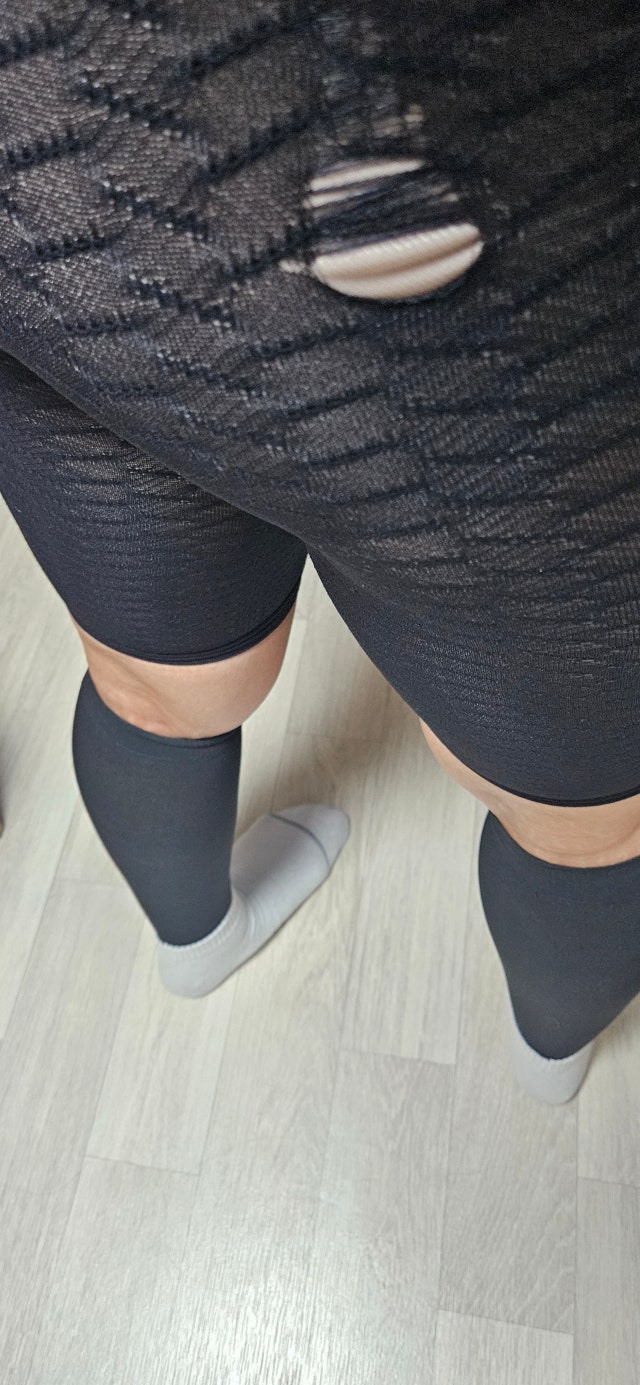 배송받고 다음날 아침에 입어보는데 구멍이 나있어서 교환신청 해서 받았는데 이번에는 입다가 바로 올이 나가면서 구멍이 나네요.세게 잡아당겨서 입은것도 아니고 구멍날까봐 살살 올려입었는데 스타킹 보다도 더 잘 구멍 나네요..오래되서 삭은옷이 찢어지듯 구멍이 넘 쉽게 나네요. 고객센터 응대는 만족하는데 상품이 영... 종아리 압박밴드가 넘 좋아서 이 제품도 믿고 구매한건데 이건 아니네요... 3000원 이라고해도 안살듯요...사진도 찍어뒀는데 교환하기 귀찮아서 그냥 버렸네요... 스킨색은 여러번 입어도 괜찮던데 블랙은 허리도 말리고 완전 실망입니다...