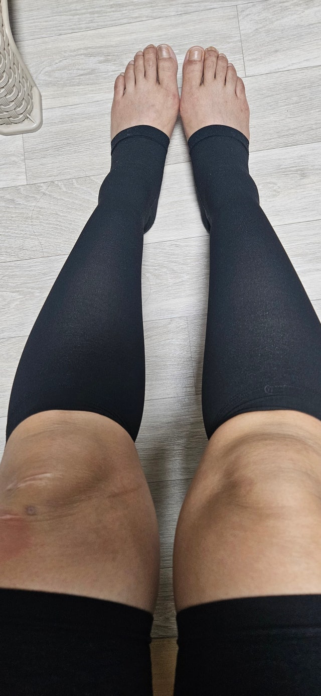딸아이가 사준거 쓰다가 넘 좋아서 2개 더 주문했어요. 장시간 서있는 일할때 다리가 넘 편해요~ 짱짱하거 잡아주는데 전혀 불편하진 않아요. 말려서 흘러 낼지도 않아요