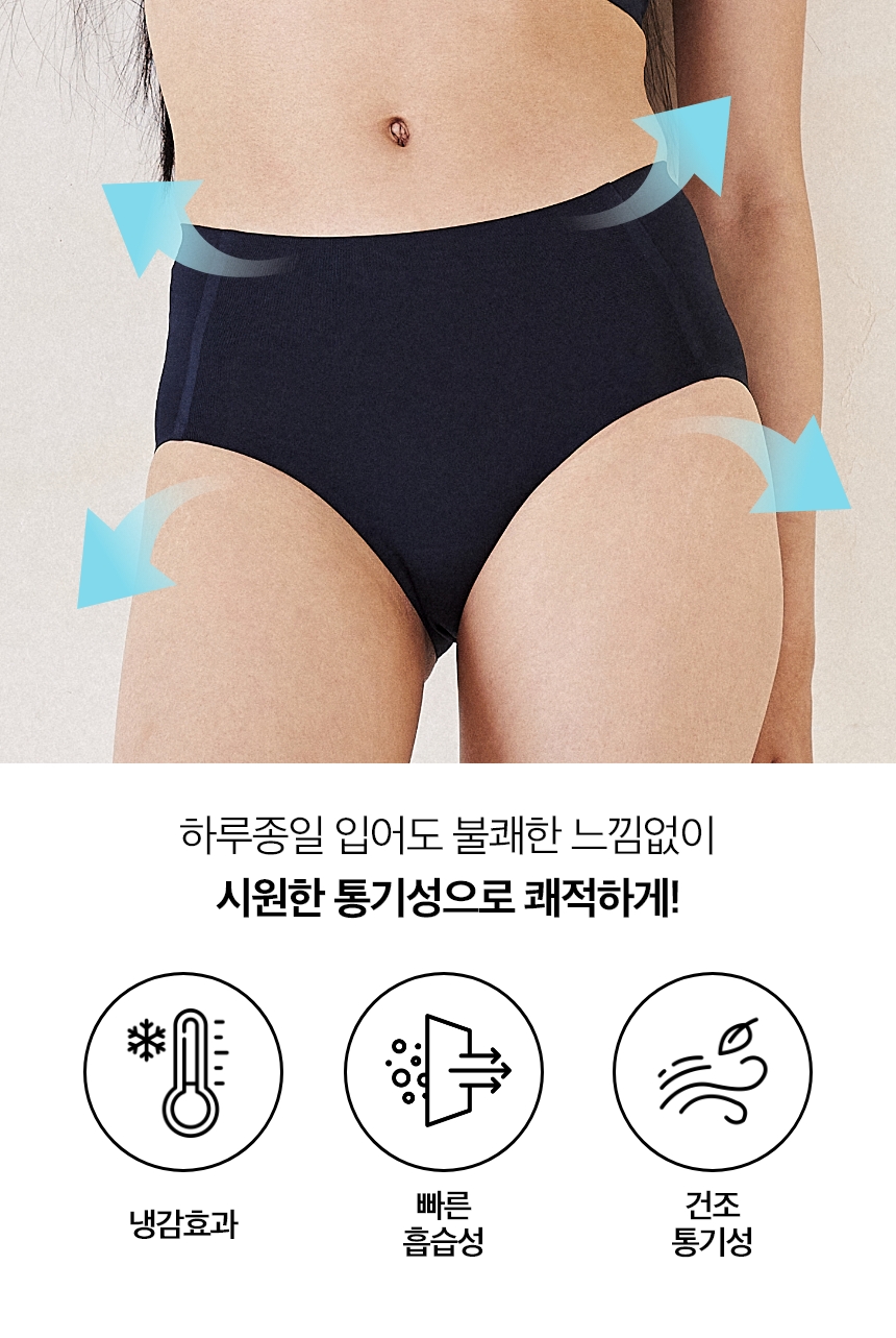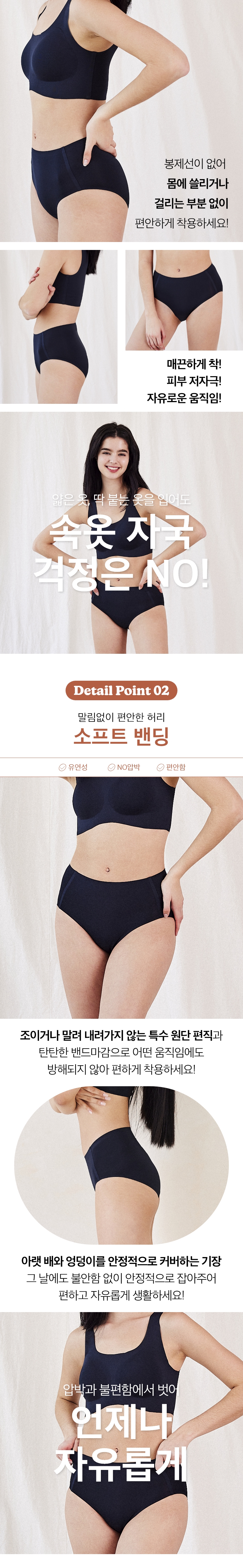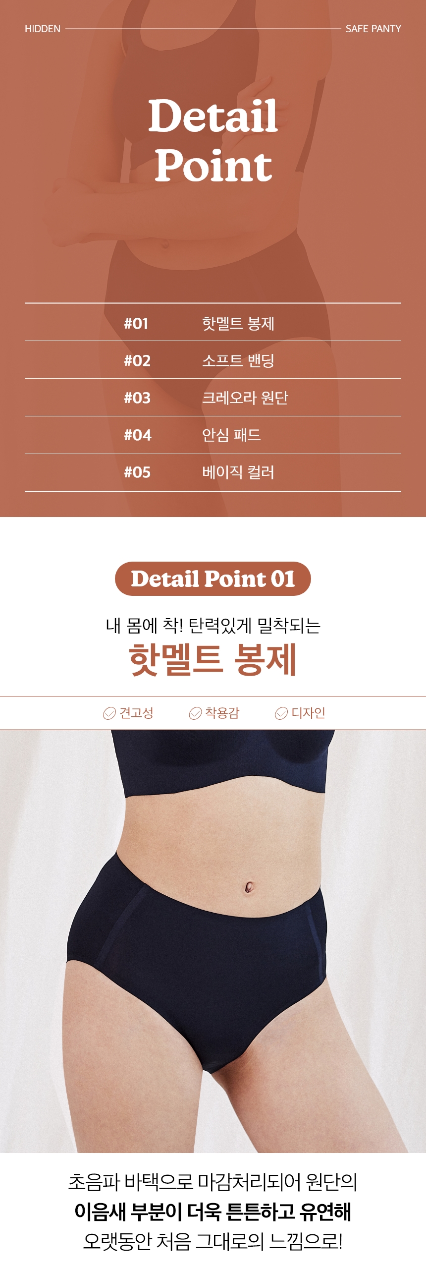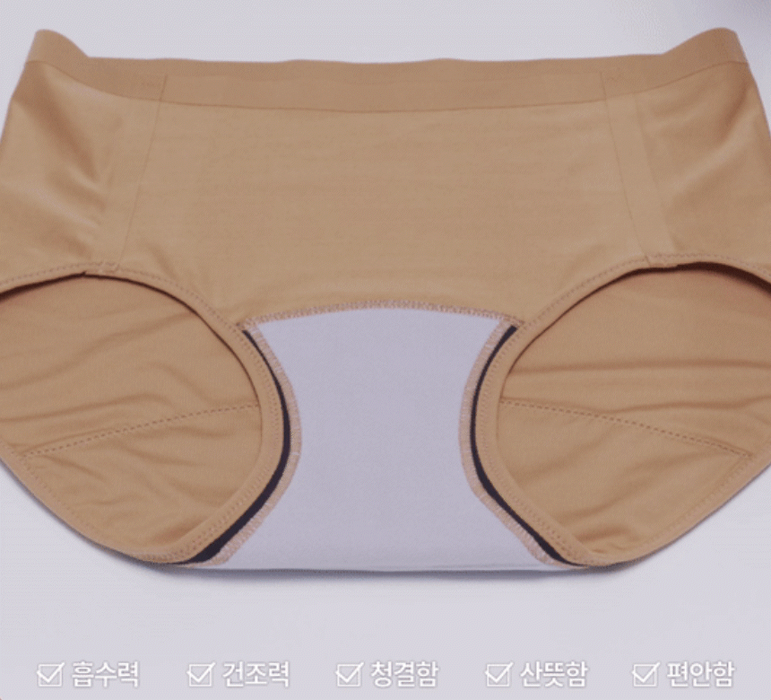 안심팬티 / 4중 레이어 거셋 / 그래핀 원단 / 콜라겐공급 / 핫멜트 봉 / 심리스밴딩 / 스마트센싱 / 클레오라원단