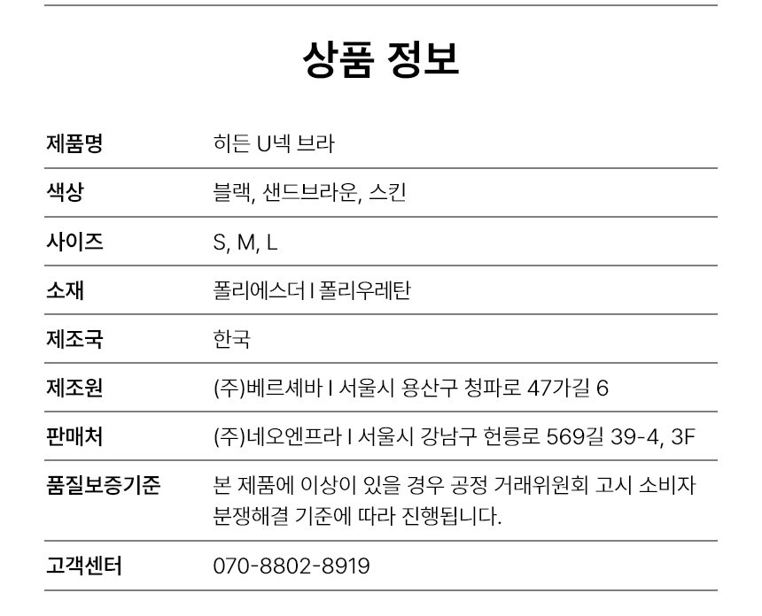 히든 U넥 브라
